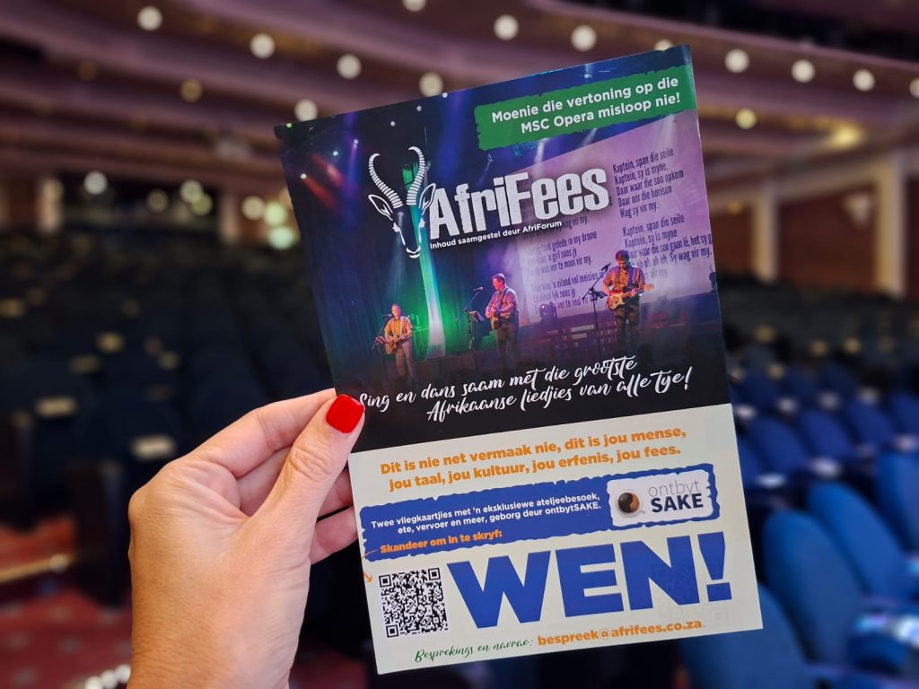 Die unieke Afrikaanse taal-en-kultuurfees, beter bekend as AfriFees, het vir die eerste keer internasionale waters betree. Hierdie unieke keurspel, wat Afrikaanse kultuur en musiek vier, bied vandeesweek hope vermaak aan vakansiegangers aan boord die MSC Opera.