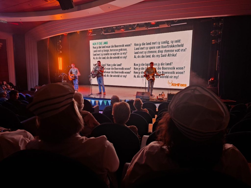 “I thoroughly enjoyed the show. I might be very English but I love Afrikaans music!” het een vakansieganger by AfriFees se eerste vertoning aan boord die BokBoot gesê.