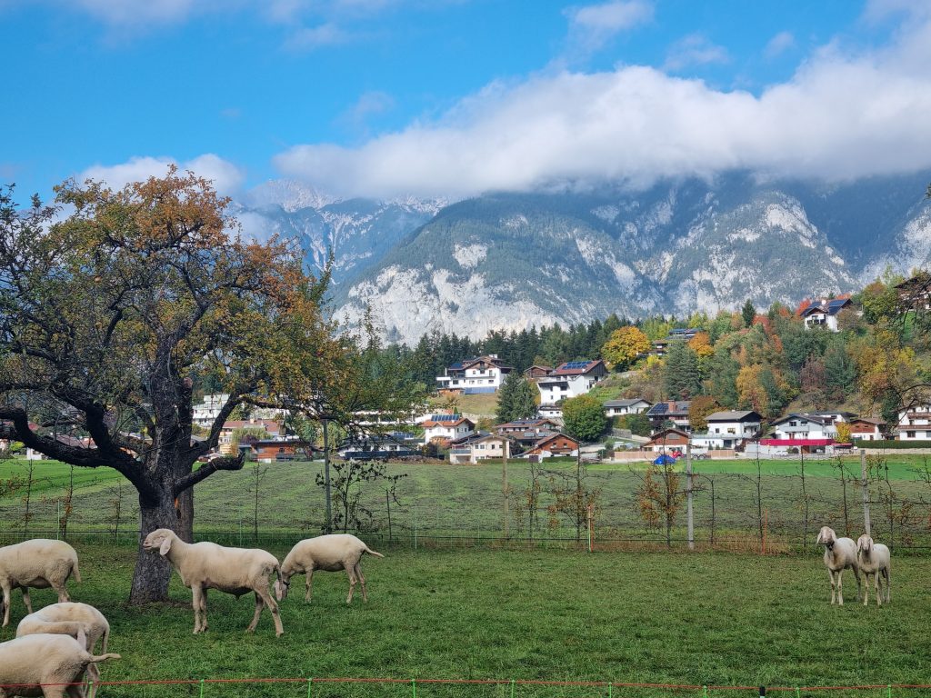 Ons woon in ’n dorpie sowat 15 km buite Innsbruck en word omring deur berge – berge en nog berge. Om ’n horison te sien is hier amper ’n luukse. Elke seisoen bring sy eie skoonheid: die lente wanneer alles blom, die herfs met sy warm skakerings van oranje, rooi en bruin, en die winter wanneer alles stil word onder ’n kombers van sneeu. Somers is kort, maar warm, en dan benut mense elke oomblik om buite te wees – stap in die berge, fietsry of net rustig in die natuur sit.