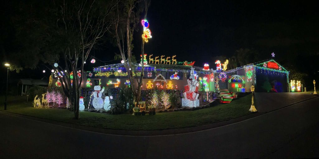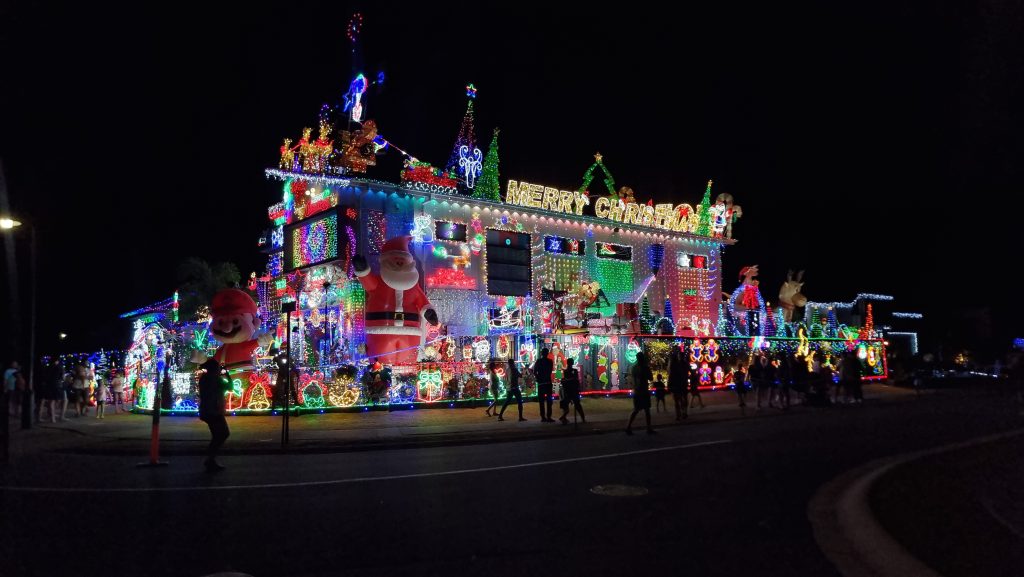 Absoluut! Die Australiërs maak regtig op vir die gebrek aan feesgees in die winkelsentrums met hul onverbiddelike ywer vir Kersliggies – dis die gier hier. Hier is ’n huis naby ons wat volgens die inwoners tans glo met meer as 60 000 liggies spog – ’n absolute baldadige skouspel! Hulle het selfs ’n reusekollig wat so groot is dat jy dit van enige plek in die dorp kan sien. Mense ry selfs van Brisbane af net om daarna te kom kyk.