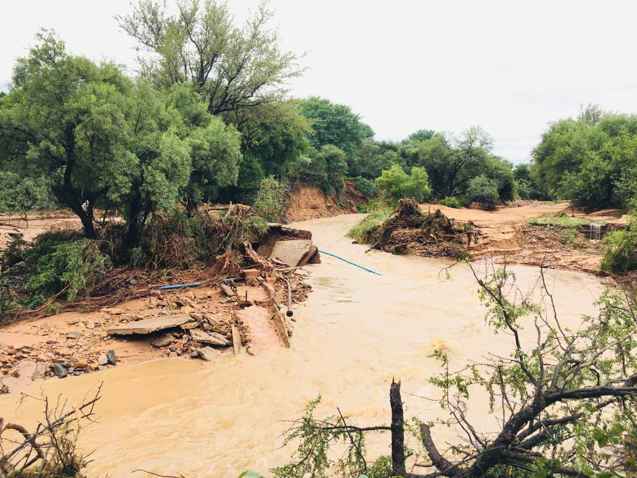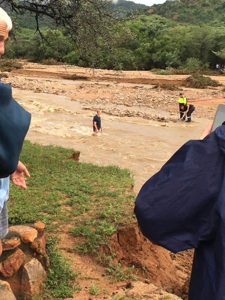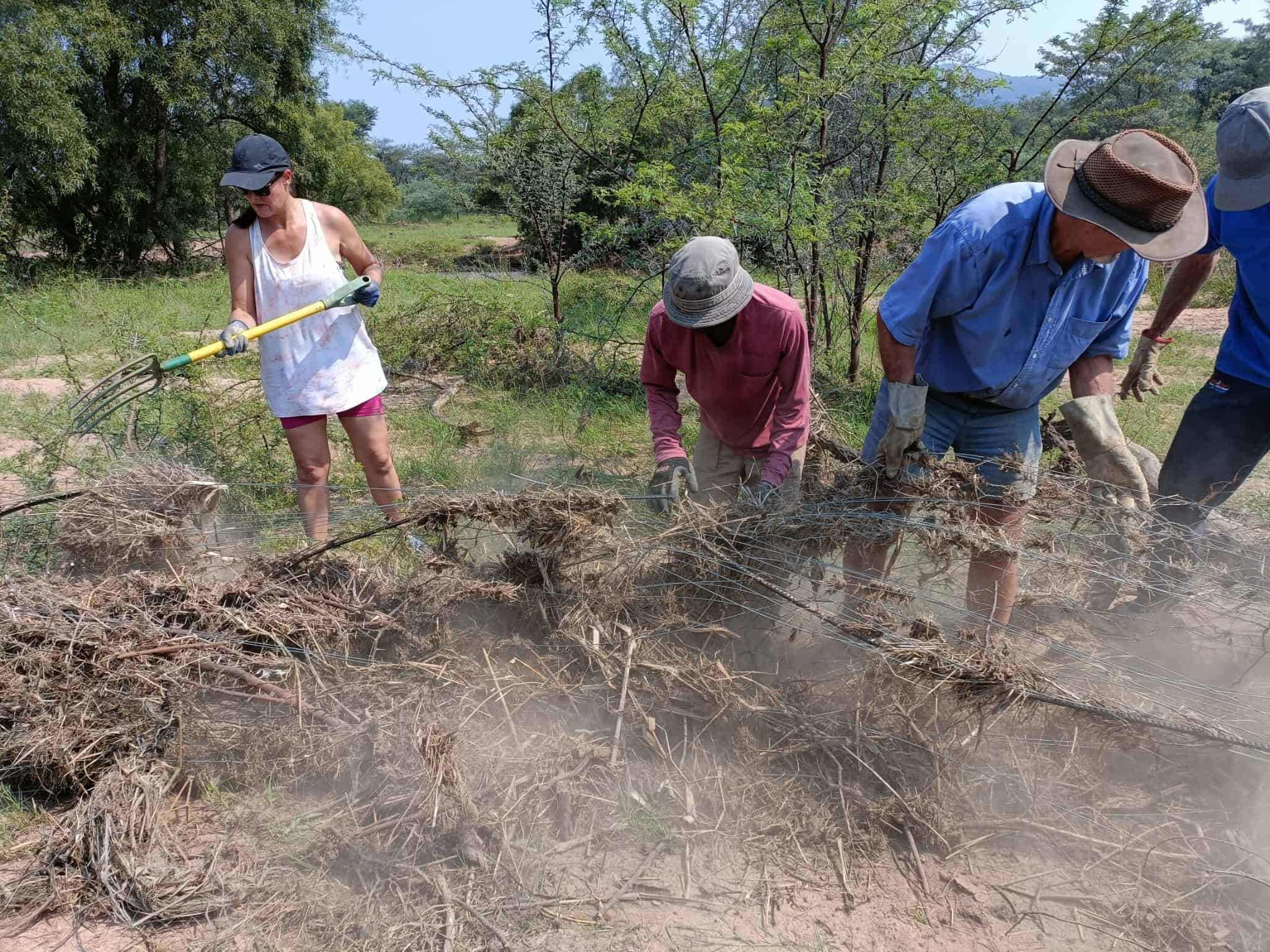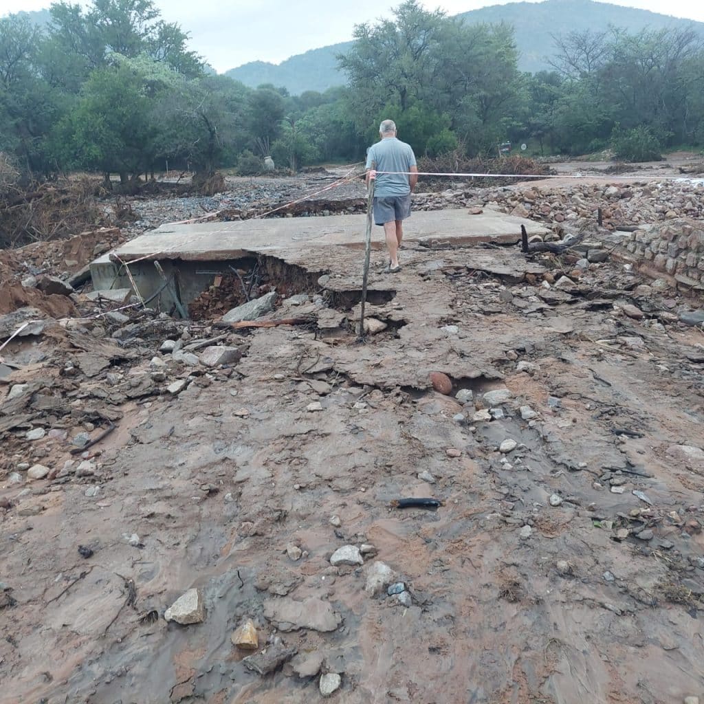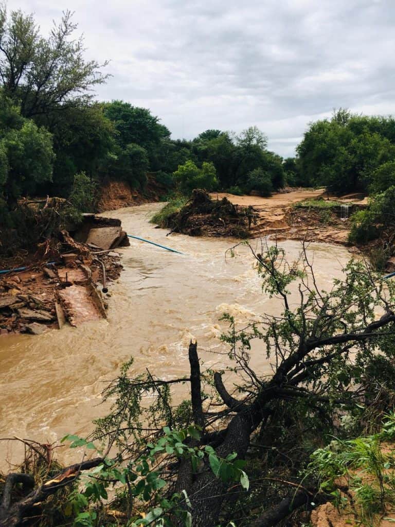 Ek en Mariaan het vroeg in Maart 2025 op Leeupoort aangekom. Ons kon skaars ons oë glo toe ons die omvang van die skade gade slaan. Ons was net ’n kort tydjie daar en het saam met ander vrywilligers ingespring om die opgefrommelde grensdrade te begin loswikkel. Die watergeweld het stompe, rotse en selfs metaalpale in die heinings ingewoel. Dit was ’n welkome gesig om almal: oud, jonk en half kruppel (met verwysing na myself met ’n kniebesering) met mag en mening te sien saamwerk.