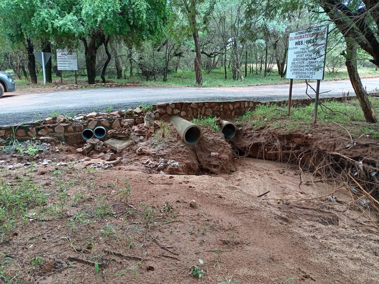 Die rus en vrede van die boomryke dorpie is op Dinsdag 19 Februarie 2025 wreed versteur deur oorstromings wat deur wydverspreide swaar reënneerslae veroorsaak is. Damwalle het meegegee en die groter afvloei uit die naasliggende Boshofsberge het die gewoonlik bedaarde Blinkwaterspruit in ’n bruisende, dreigende rivier verander. Dit het die twee brûe na die dorp summier vernietig. Die watergeweld het kraglyne en waterpype meegesleur, die grensdrade van Leeupoort en die aangrensende wildplaas in ’n metaal koeksister opgerol en paaie in slote omskep. Elektroniese seine het verdwyn na mate die batterye in die selfoontorings afgeloop het en selfs sonpanele was meestal uit aksie as gevolg van die konstante bewolkte weer en aanhoudende reënbuie.