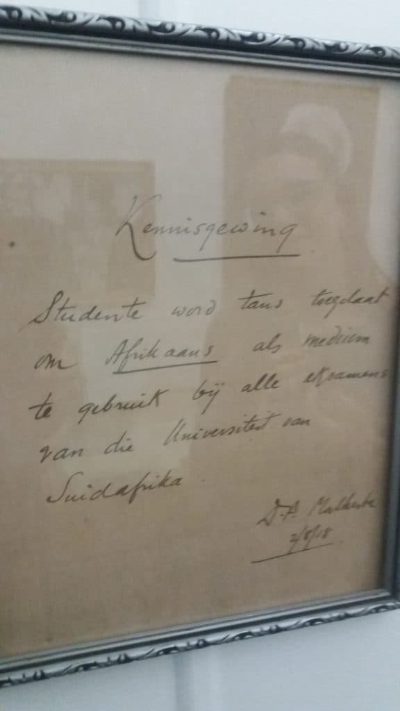 In die wonderlike Nasionale Afrikaanse Letterkundige Museum en Navorsingsentrum (NALN) in Bloemfontein is die studeerkamer van D.F. Malherbe heringerig. Dit lyk kompleet of hy enige oomblik daar gaan instap en sy pyp opsteek! Eenkant hang ’n geraamde nota in sy handskrif wat jy maklik kan miskyk, maar wat die hoër onderwyslandskap in Suid-Afrika onherroeplik verander het. Daar staan: