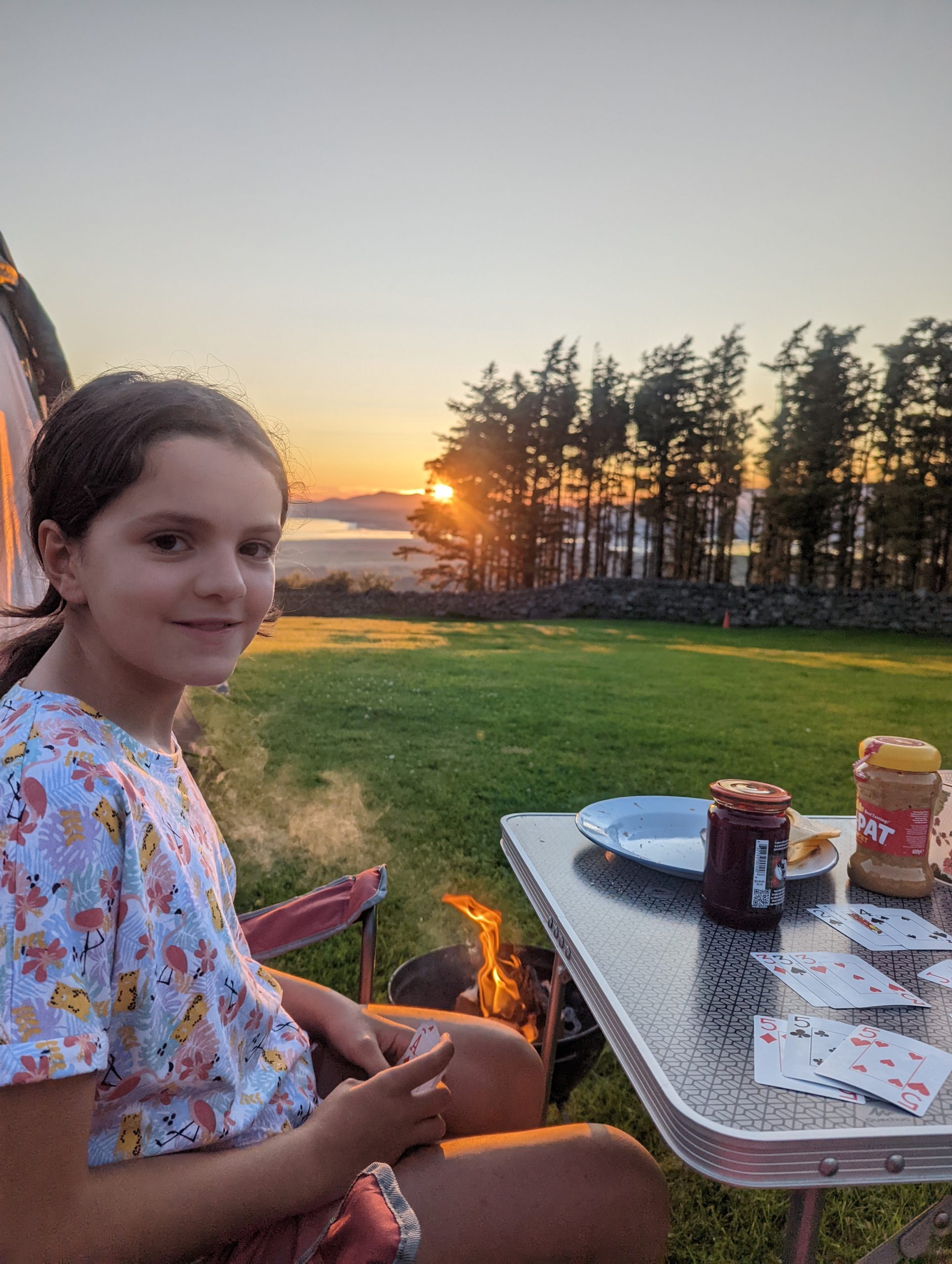 My dogter ken ’n paar woorde en sinne in Afrikaans. Sy is lief vir haar Afrikaanse oupa en ouma en is baie gelukkig om ook haar Afrikaanse tante en niggies naby te hê. As gevolg van ons unieke situasie en omdat daar nog ’n taal, naamlik Spaans, betrokke is, fokus ek en my dogter op Spaans. Baie mense in my man se familie kan nie Engels praat nie, insluitend my dogter se ouma. Vir die behoud van internasionale vrede en gelukkige familieverhoudings fokus ons dus op Spaans. Ek is seker Silvia sal Afrikaans leer praat as sy ouer is. Dit lyk asof sy tale baie vinnig aanleer. Sy geniet beslis haar sport en is ’n sonskynkind wat gelukkig is buite in die natuur. Ons kampeer baie in die somer en maak die beste van die twee weke sonskyn wat ons elke jaar hier in die hooglande kry waar ons woon. (Dis net ’n grappie! Ons het darem nie net twee weke sonskyn nie, maar die weer is baie koud en nat!)