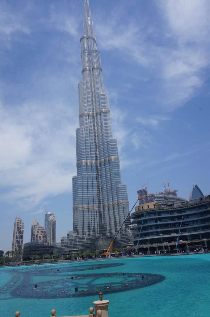 Een van die hoogtepunte van ons toer was die besoek aan die wêreldbekende Burj Khalifa. Teen 829,8 m hoog en met 163 verdiepings is dit tans die wêreld se hoogste mensgemaakte struktuur – drie keer so hoog as die Eiffeltoring in Parys! Al staan ons hóé ver, kan ek steeds nie die Burj Khalifa op een foto inkry nie.