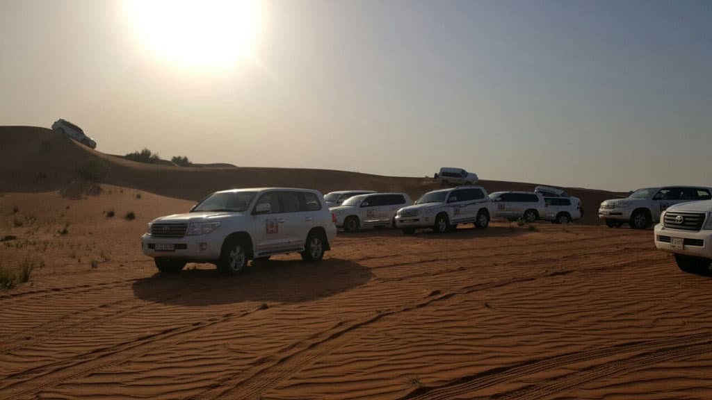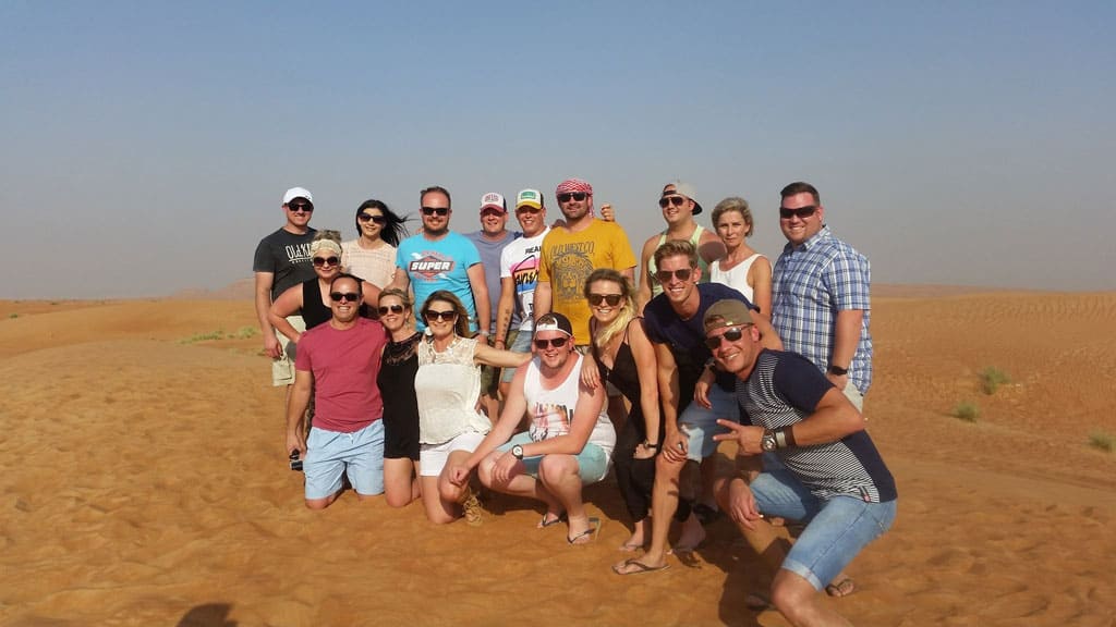 Teen 15:00 word ons by die hotel met Toyota Land Cruisers van Dessert Adventures opgelaai. Ons gaan op ’n woestynsafari sowat 70 km buite Dubai – en dis beslis nie gemaak vir dié wat maklik karsiek raak nie! Soos ons op en af oor die duine ry, kom daar benoude gille van die dames in die kajuit.